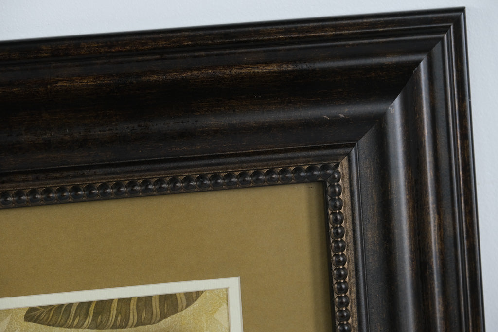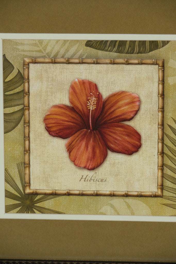 Infuse your home with island-inspired warmth through this charming set of two framed tropical flower prints — “Hibiscus” and “Lotus des Indes.” Each artwork features a richly colored bloom surrounded by soft palm leaf motifs and bordered with a faux bamboo frame design, evoking a serene, coastal retreat. The deep espresso-brown frames with beaded inner detailing and olive-toned mats complement the natural tones of the artwork beautifully. Perfect for brightening up bedrooms, hallways, or sunrooms, these pieces bring a relaxed, resort-style elegance to any space.