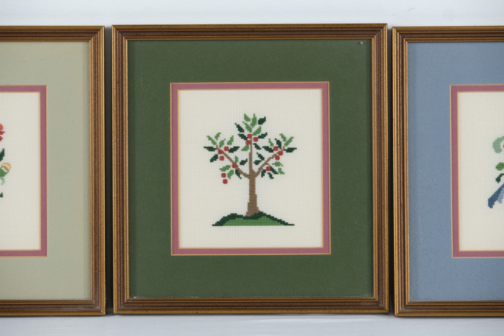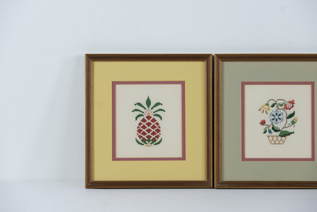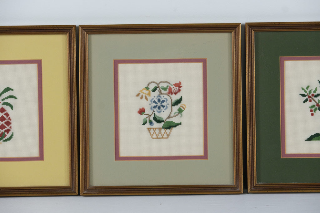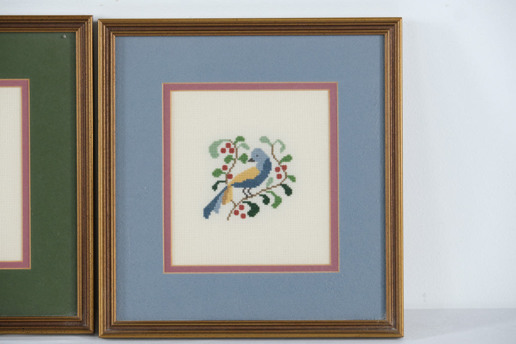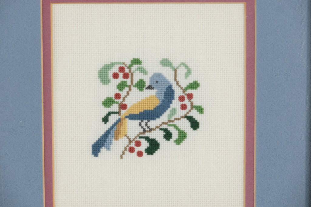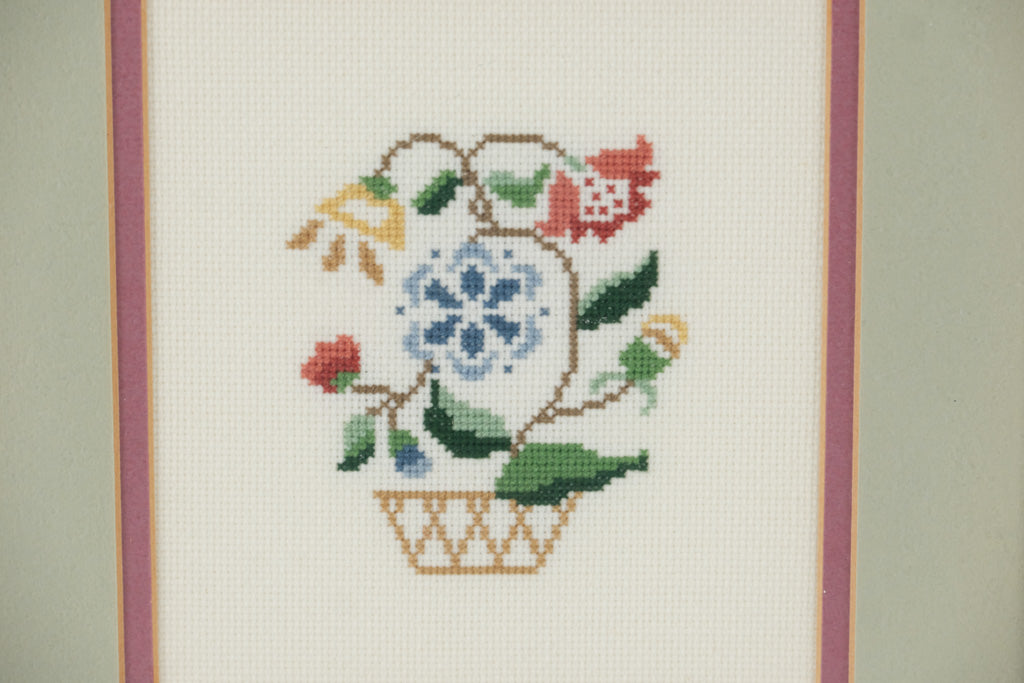 Excellent β frames and glass are clean and intact; cross-stitch work is crisp and vibrant with no visible discoloration.