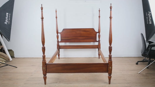 Crafted in timeless elegance, this full-size mahogany four-poster bed brings classic refinement and warmth to any bedroom. Its beautifully turned posts and deep, rich finish reflect the craftsmanship and enduring charm of traditional design, making it a sophisticated centerpiece that celebrates solid wood artistry.