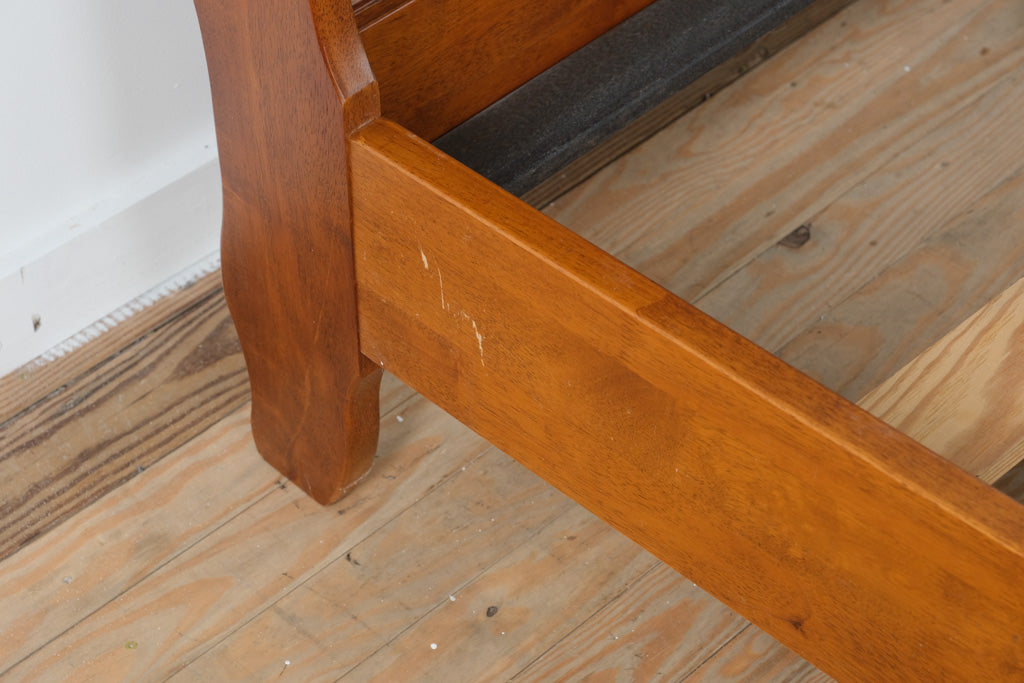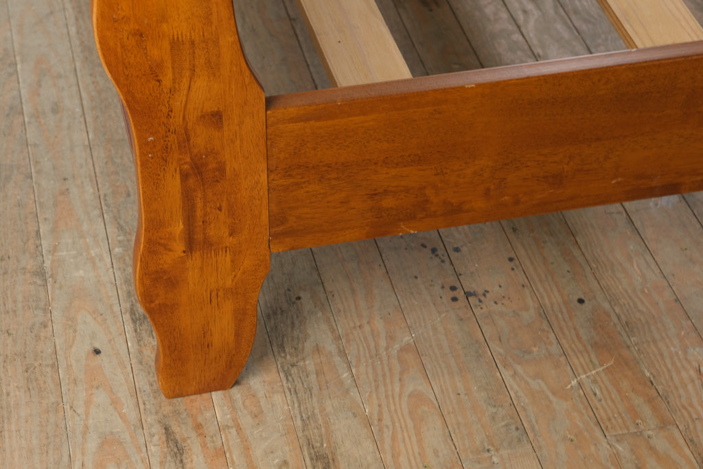 Expertly built from solid wood, this bed showcases smooth, rich grain patterns and a hand-finished surface that accentuates its natural warmth. The substantial frame offers excellent stability and weight, reflecting quality construction meant to last for generations. The sleigh-style contours and paneled design highlight traditional woodworking artistry at its finest.