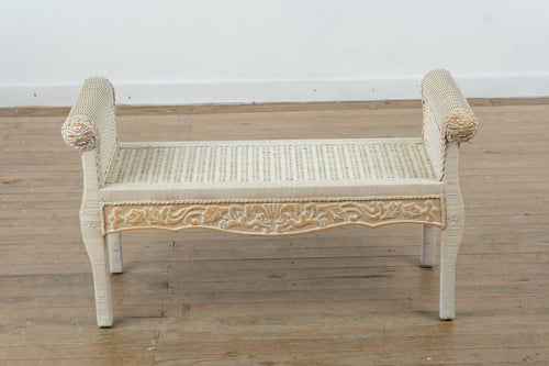 Jamaica Collection Whitewashed Wicker & Carved Wood Bench