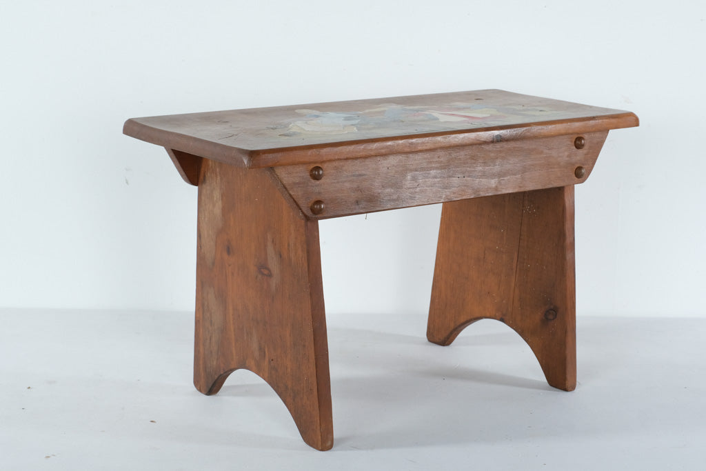 Structurally, the bench is sound, sturdy, and stable, suitable for use as entryway seating, a hearth bench, bedroom accent, or decorative display. The combination of folk art painting and honest age wear makes this a compelling piece for collectors and interiors that favor warmth and story over perfection.