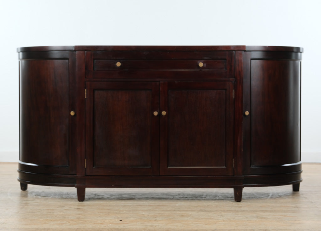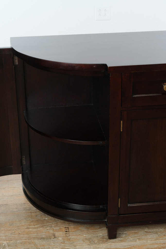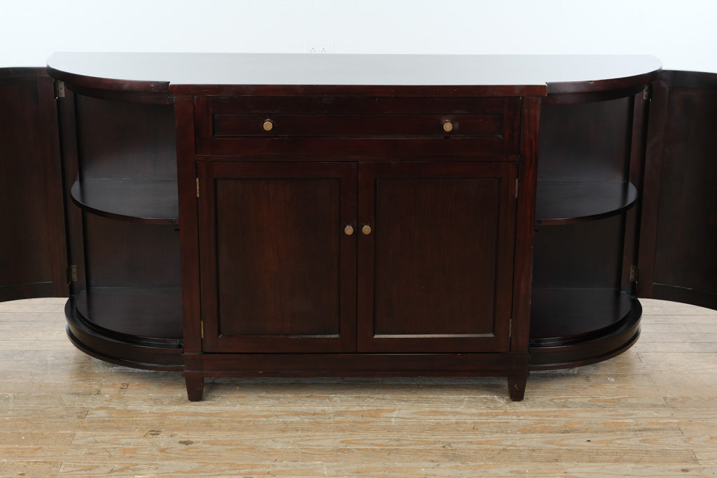 Versatile by nature, this sideboard works seamlessly as a dining room buffet, living room media console, or entryway storage piece. The rounded ends lend a subtle architectural softness, while the generous surface and open interior shelving make it ideal for serving, display, or everyday organization in contemporary, transitional, or modern-classic interiors.