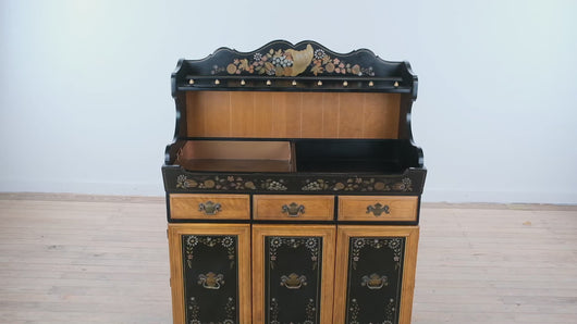 Exceptionally versatile, this piece can serve as a dry sink, bar cabinet, buffet, or an easy conversion to a working sink. Its bold folk-art presence makes it a natural conversation piece, while the generous storage and adaptable interior allow it to function beautifully in dining rooms, kitchens, entryways, or creative studio spaces.