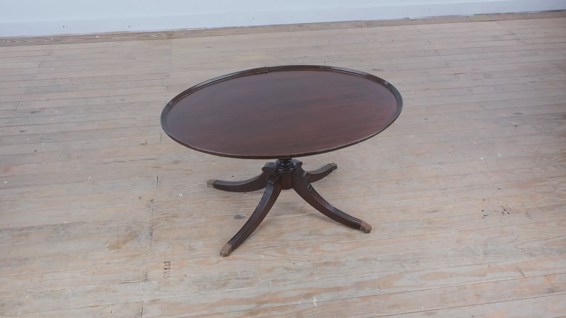 Crafted with timeless elegance and rich, classic character, this Brandt Furniture Company mahogany coffee table embodies traditional American craftsmanship at its finest. The warm, deep mahogany finish highlights the graceful oval top and refined pedestal base, creating a statement piece that feels both substantial and sophisticated.