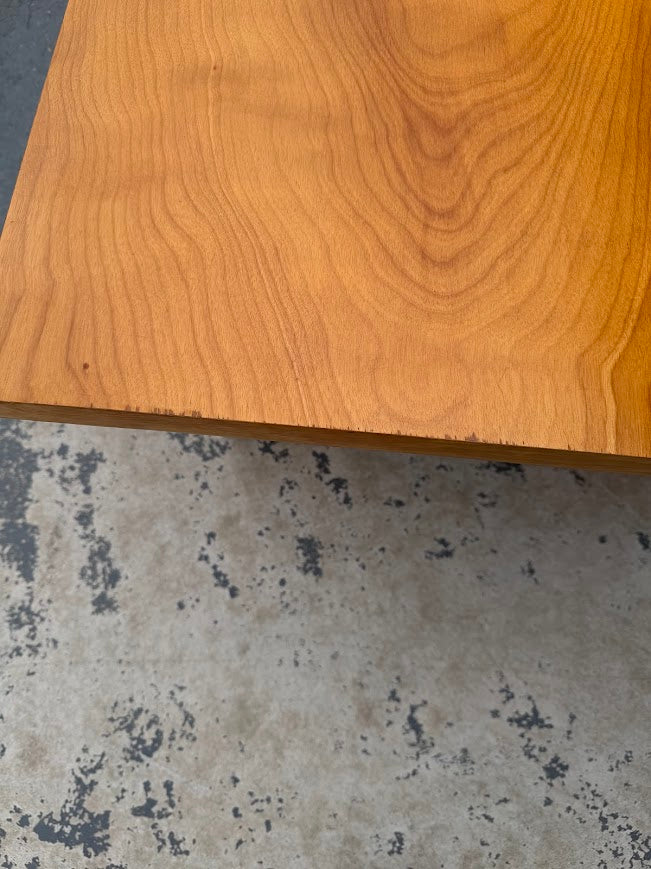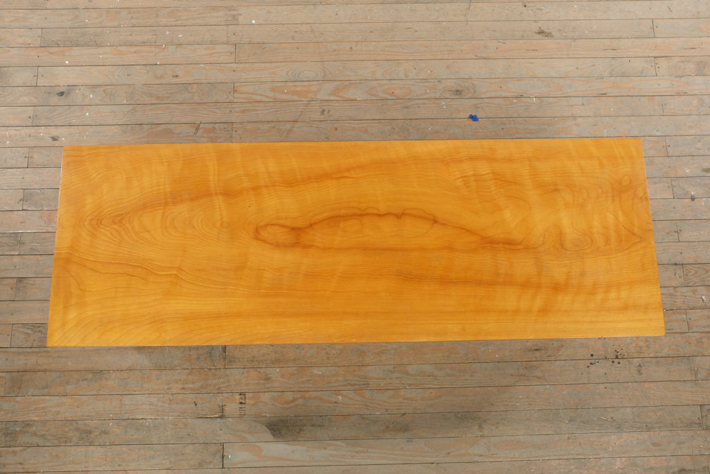 Crafted from solid cherry wood, this piece highlights naturally occurring curly figure that creates subtle movement and depth across the tabletop. The slab-style top is smoothly finished to enhance the wood’s warmth and chatoyance, while the minimalist solid wood legs provide visual balance and structural integrity. The construction emphasizes precision, proportion, and restraint—hallmarks of thoughtful modern design.