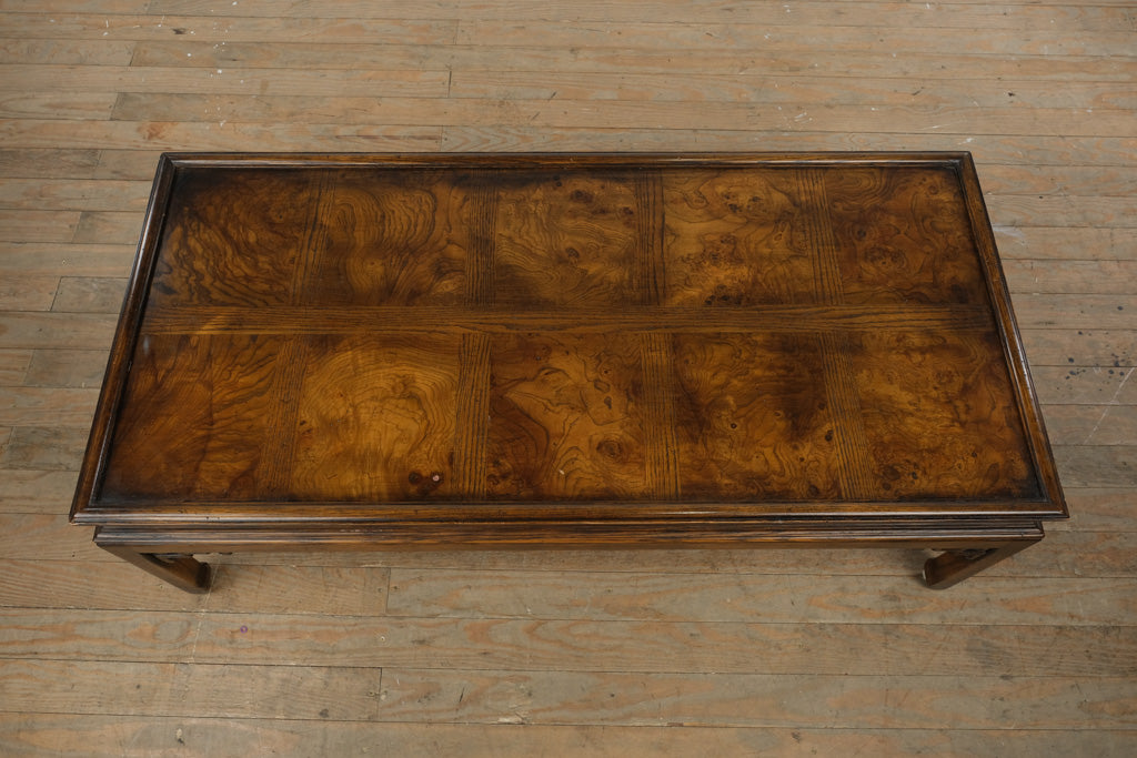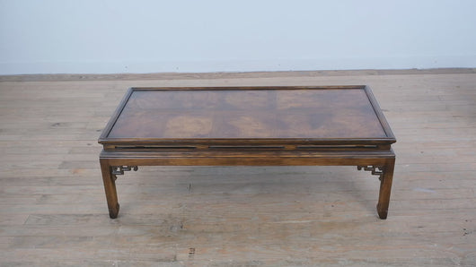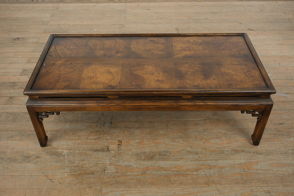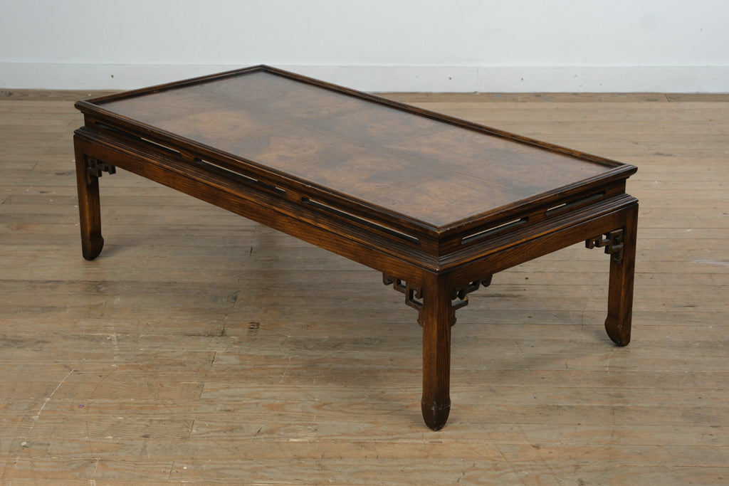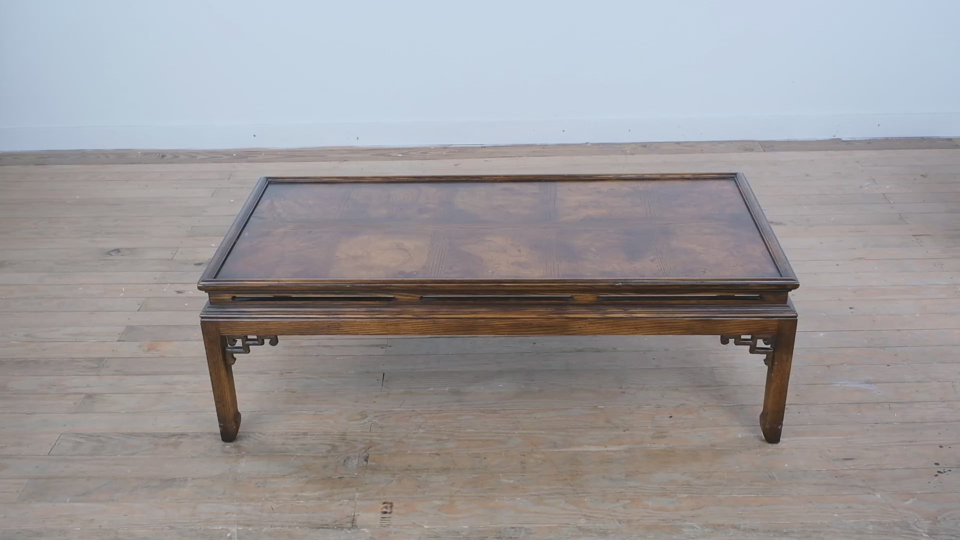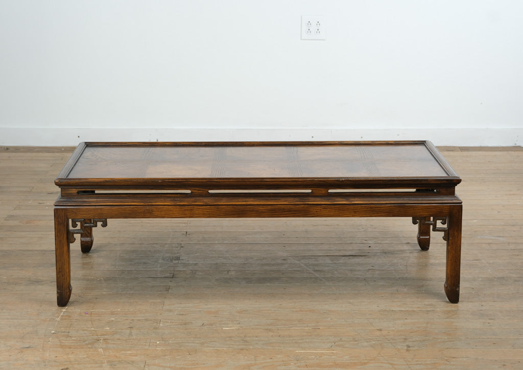 Elegant and refined, this Oriental-style tray top coffee table brings an air of quiet sophistication to any living space. Its low, balanced profile and finely detailed apron capture the artistry of traditional Asian design while maintaining the warmth and character of vintage craftsmanship.