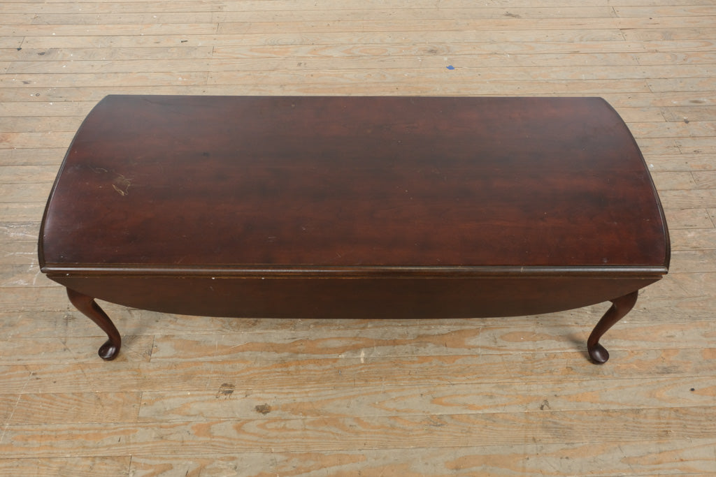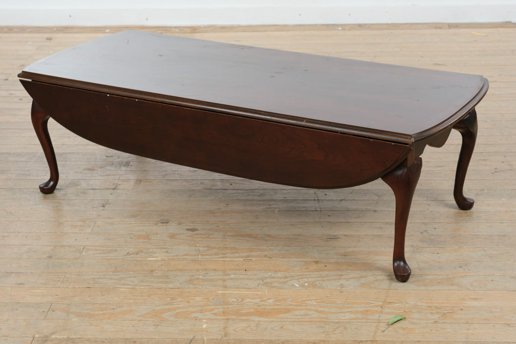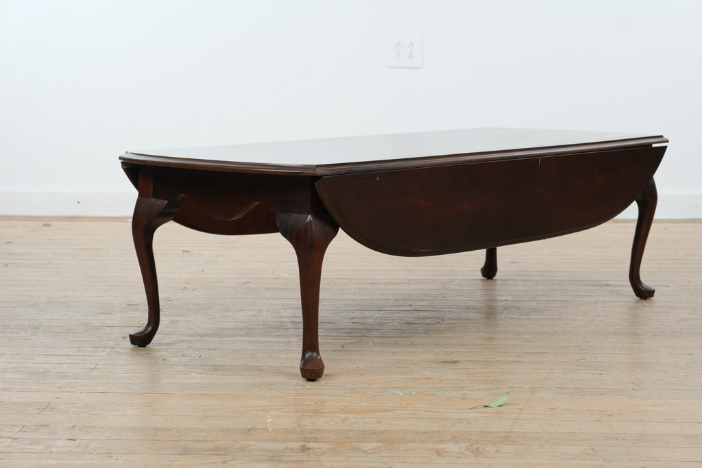 Classic solid wood drop leaf coffee table featuring elegant Queen Anne style legs and a rich, warm mahogany toned finish designed to anchor traditional and transitional living spaces. The gently curved apron and refined cabriole legs create a timeless silhouette, while the expanding top offers versatile functionality. Thoughtfully selected by Craze Furniture, this piece blends graceful design with practical adaptability.