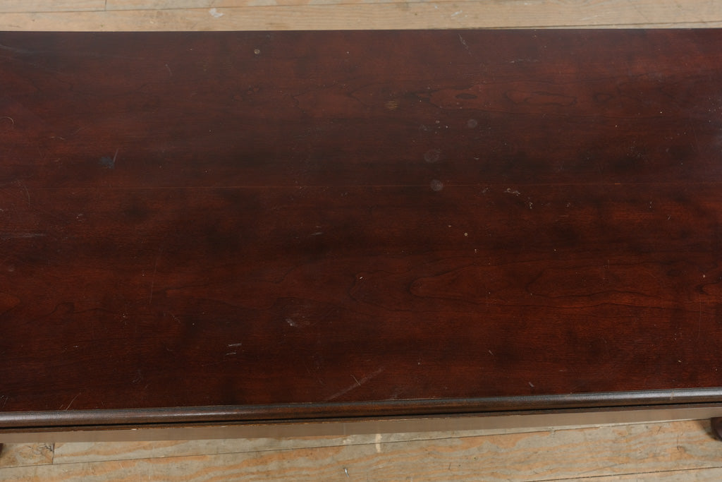 The warm finish enhances the natural wood grain, giving depth and dimension to the surface. Its classic proportions make it suitable as a coffee table or a statement accent table in formal living rooms.