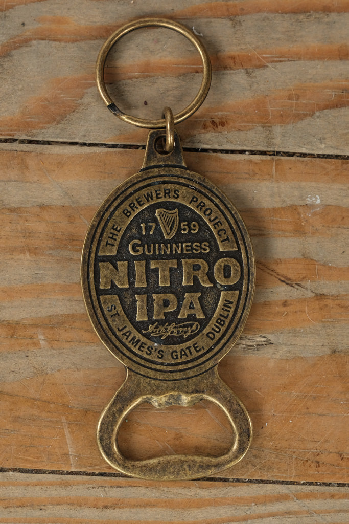 Bring a touch of classic pub charm wherever you go with this Guinness Nitro IPA brass-tone keychain bottle opener. Designed with a rugged vintage finish, this solid metal piece features the iconic Guinness harp, “1759,” and “St. James’s Gate, Dublin” branding. Practical yet collectible, it’s perfect for Guinness fans, barware collectors, or anyone who appreciates quality brewer memorabilia.