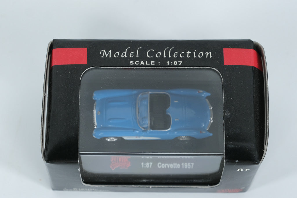 Relive the golden age of American sports cars with this Malibu International 1957 Chevrolet Corvette die-cast model in 1:87 scale. Finished in classic blue with a white side panel, this miniature captures the timeless curves, chrome accents, and open-top design of the legendary first-generation Corvette.