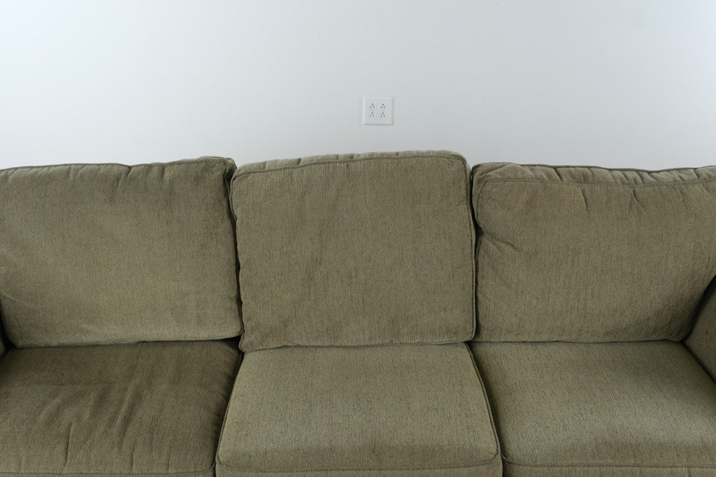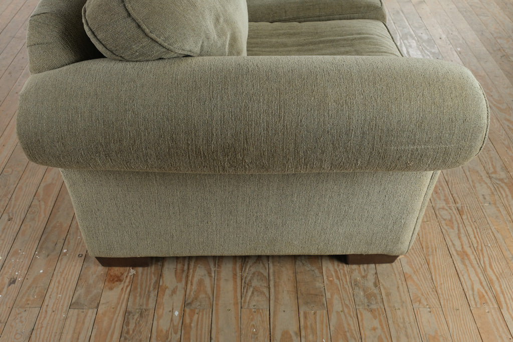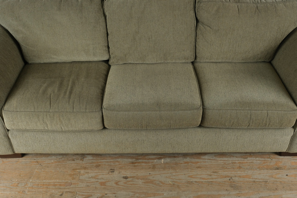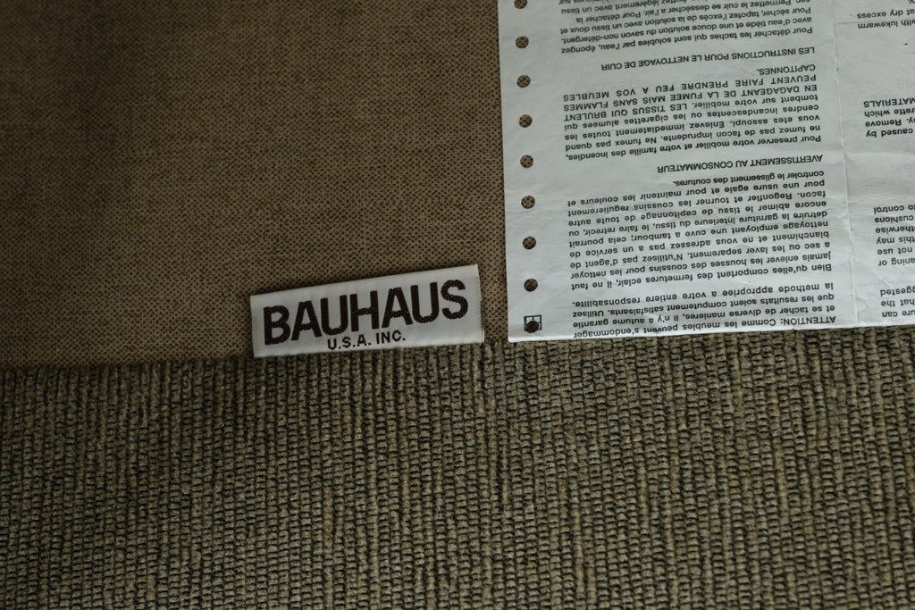 Produced by Bauhaus U.S.A., Inc., this sofa is constructed with a solid internal frame and upholstered in a durable, textured neutral fabric selected for longevity and comfort. The generously padded seat and back cushions provide supportive, relaxed seating, while the softly contoured arms introduce subtle curvature without decorative excess. Every element prioritizes usability, proportion, and honest construction—hallmarks of authentic Bauhaus furniture.