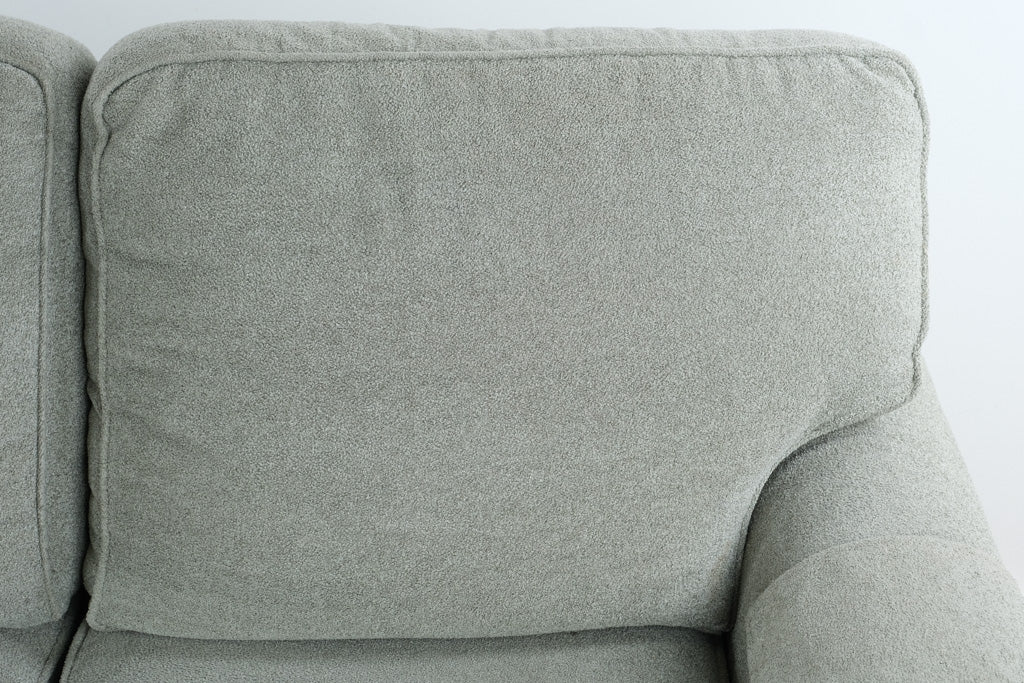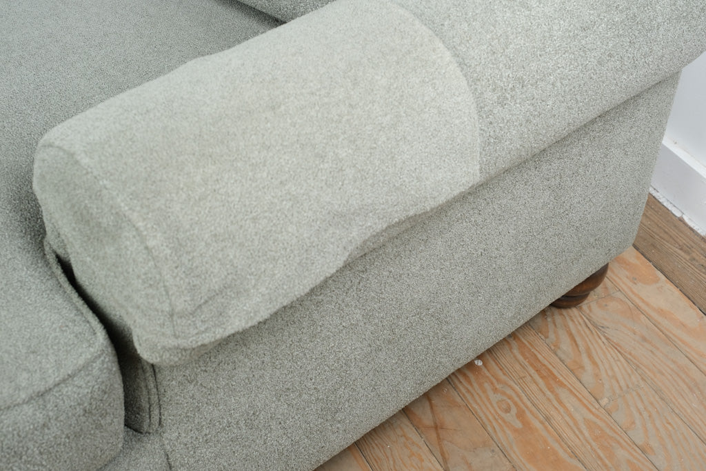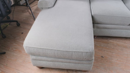 Chaise extension supports lounging while maintaining full sofa seating capacity. Clean profile and neutral upholstery integrate easily into modern and transitional interiors.