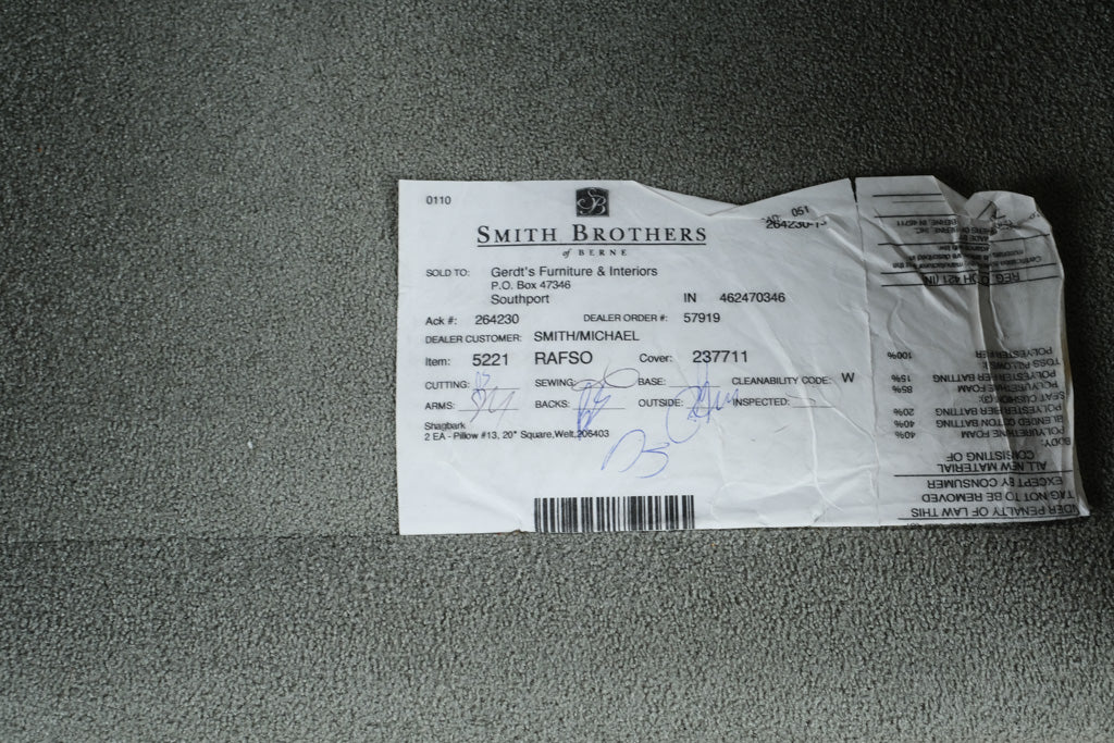 Sectional sofa with chaise by Smith Brothers Furniture featuring custom upholstery, three seat configuration, and rolled arms. High end American craftsmanship with tailored cushions and structured frame reflects premium build standards and long term durability. Craze Furniture offers a bespoke seating piece designed for comfort, scale, and daily use in primary living spaces.