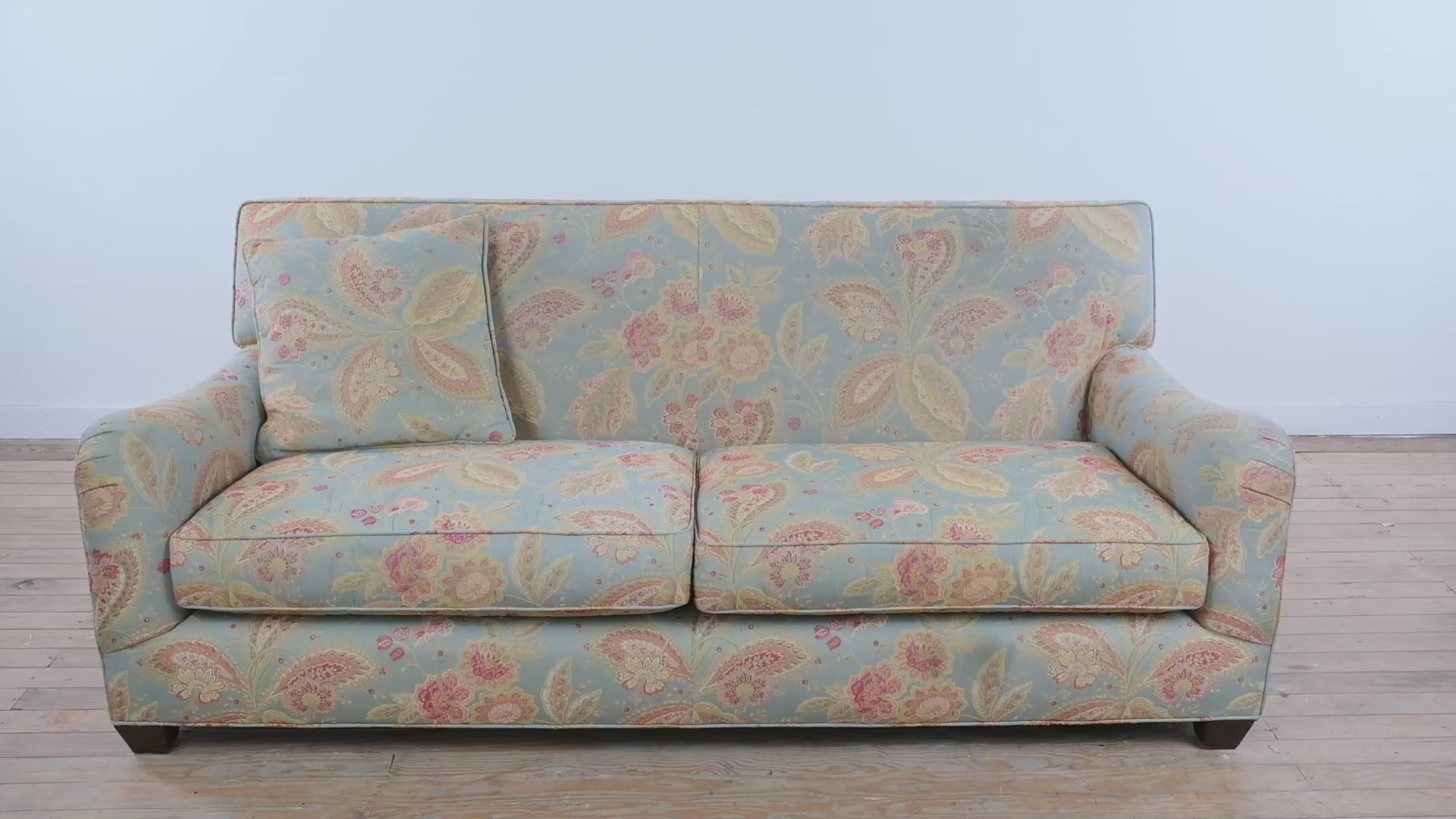 Perfect as a primary living room sofa, this piece offers generous seating while maintaining a refined, welcoming presence. The classic floral upholstery pairs well with wood furniture, neutral rugs, and layered textiles, making it ideal for traditional, cottage, or timeless transitional spaces. A great option for anyone seeking comfort without sacrificing quality or style.