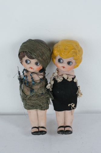 Vintage 1920s “Made in Japan” Bisque Flapper Dolls – Pair, Hand-Painted, Original Clothing![]()  - Regular price
