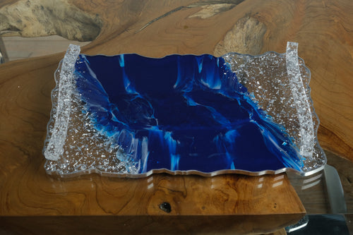 Blue Geode Resin Serving Tray – Handmade Epoxy Art with Crystal Handles![]()  - Regular price