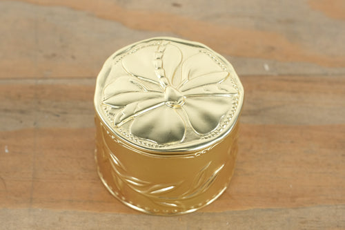 Gold Embossed Metal Trinket Box β Dragonfly Design with Floral Detail