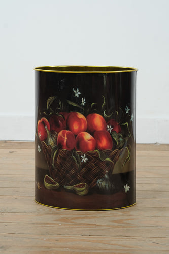Metal Waste Bin with Hand-Painted Fruit Basket Design β Rustic Farmhouse Decor