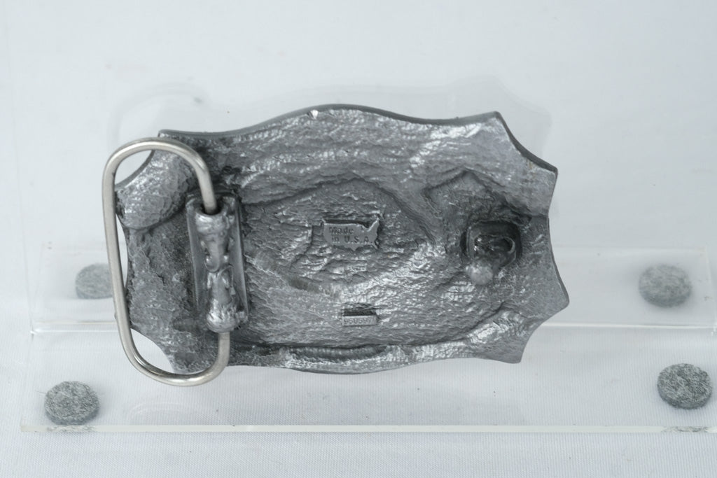 Expertly cast and marked “Made in U.S.A.” on the reverse, this heavy-duty buckle reflects classic American craftsmanship and pride. It’s a great collectible for enthusiasts of historical commemoratives, patriotic memorabilia, or vintage pewter buckles.