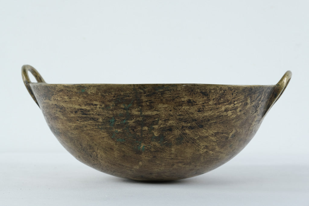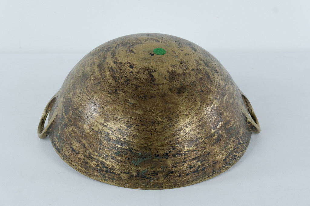 Solid antique condition with visible surface wear, patina variations, and minor spotting consistent with age and use. No cracks or repairs observed. Wear enhances the bowl’s character and authenticity.