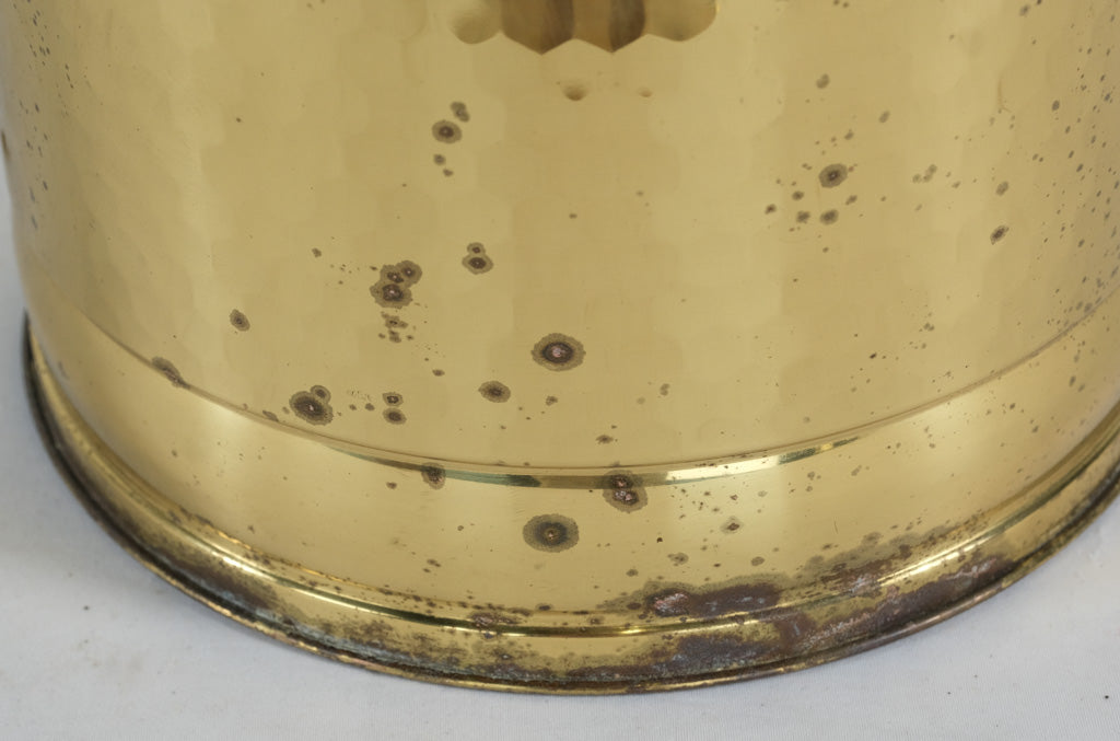• Arranged in a hammered brass planter with gentle aged patina