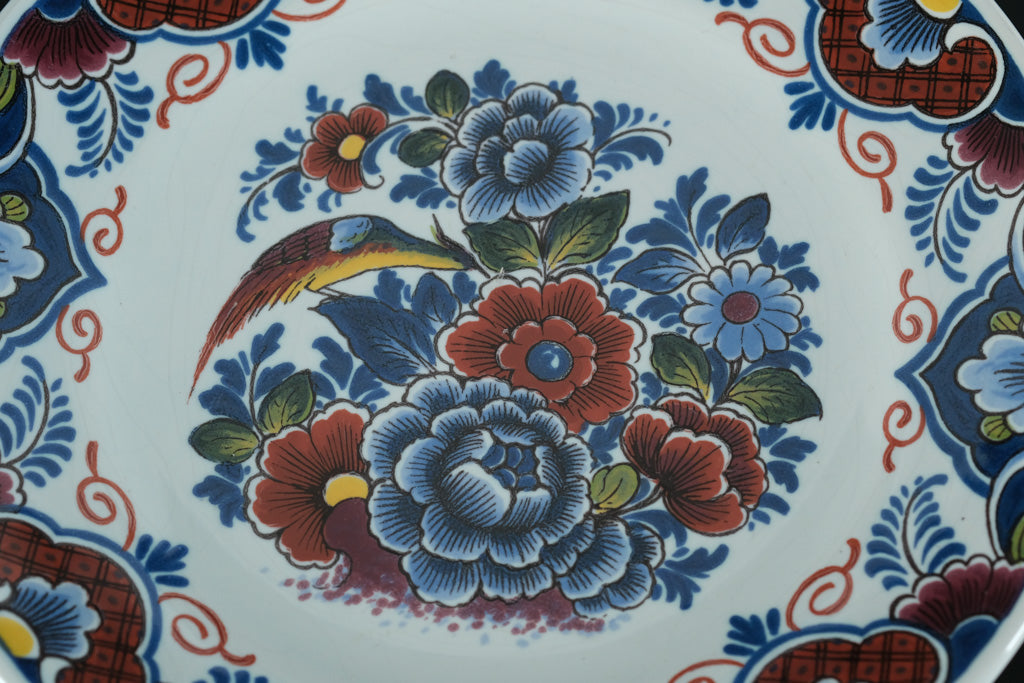 Hand-painted Delft-style floral design with central bird motif