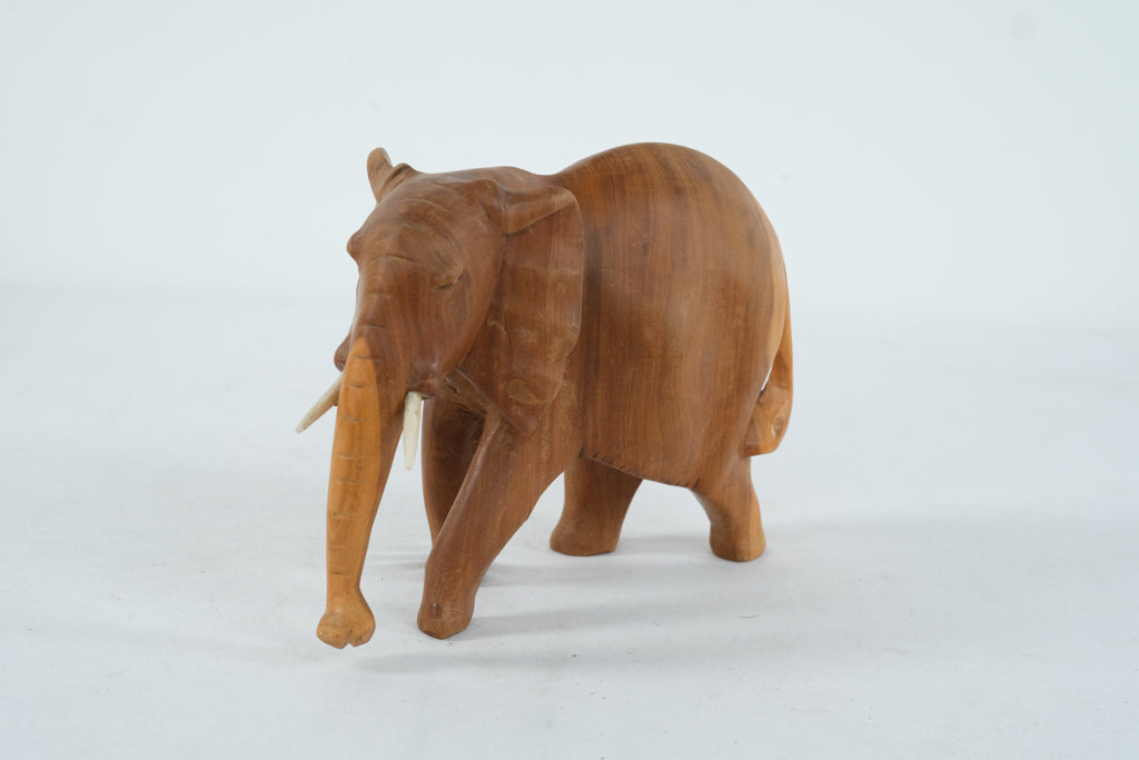 Bring a touch of craftsmanship and natural beauty to your collection with this hand-carved wooden elephant figurine. Smoothly polished with visible wood grain patterns, the piece captures the strength and grace of the elephant while showcasing the artisan’s careful attention to form. The addition of carved tusks enhances its lifelike quality, making it an elegant accent for display.