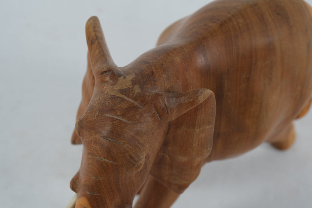 Grade: Very Good – Shows light surface wear and minor age marks consistent with handcrafted wooden pieces; tusks intact and securely in place.