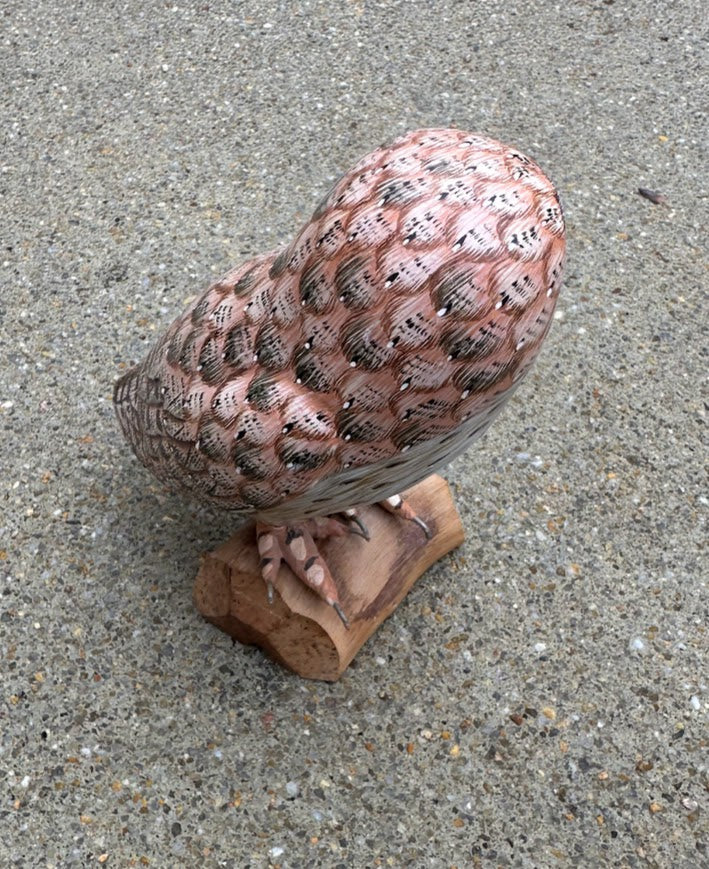 Hand-carved solid wood owl with intricate feather texture