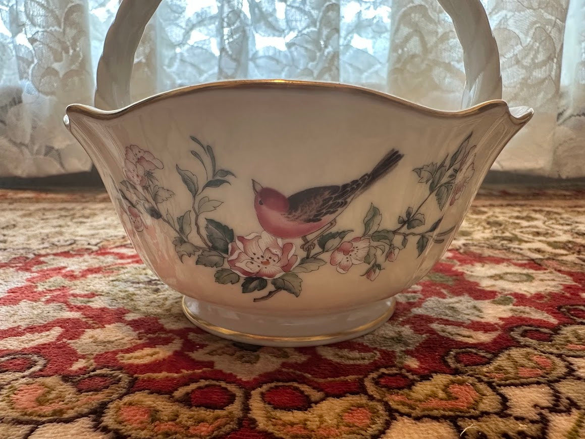 Crafted in Lenox’s classic ivory porcelain, this basket measures approximately 5.5 inches wide by 5 inches tall and makes a perfect decorative accent, floral display piece, or thoughtful gift. The gentle hues of blush, green, and cream bring warmth and serenity to any setting, reflecting the timeless artistry of Lenox’s beloved Serenade collection.