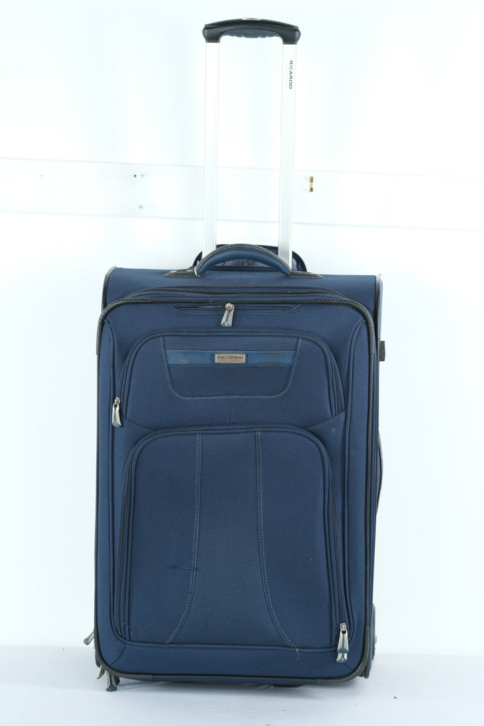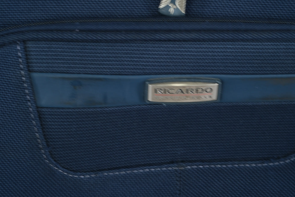 Travel in style and convenience with this durable Ricardo Beverly Hills softside wheeled suitcase in classic navy blue. Designed for both performance and sophistication, it features a sturdy telescoping handle, smooth rolling wheels, and multiple zippered compartments for efficient organization. The interior is fully lined with Ricardo’s signature geometric pattern and includes adjustable tie-down straps to keep your belongings secure on the go.