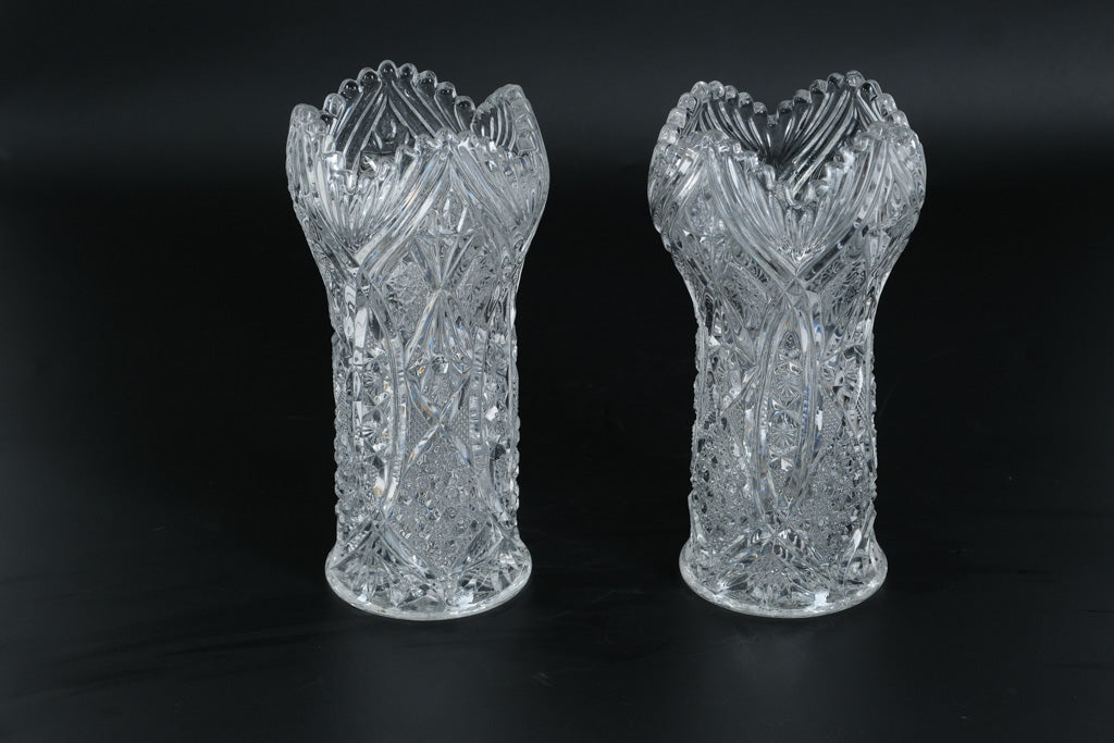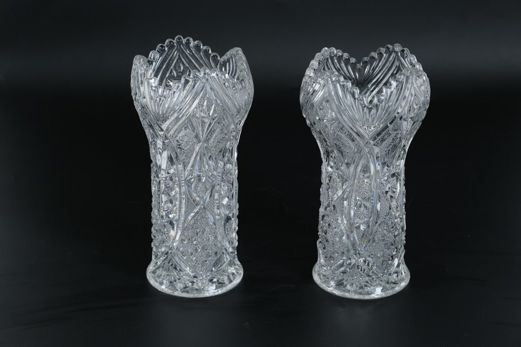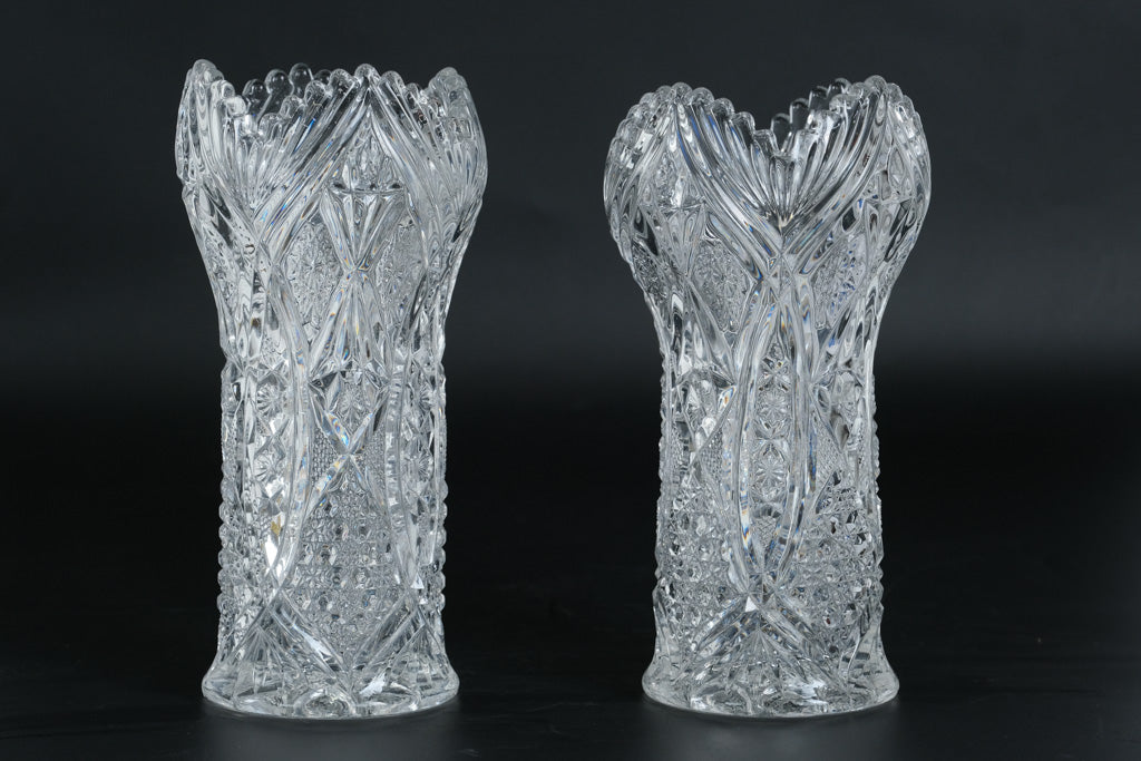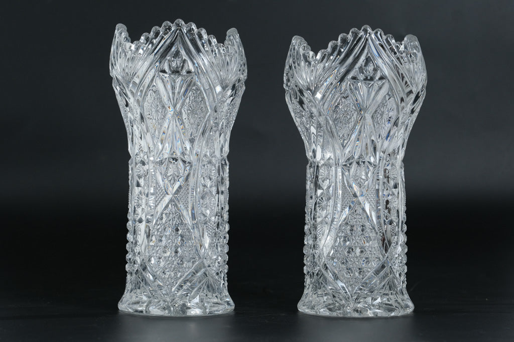 Set of two matching cut crystal vases