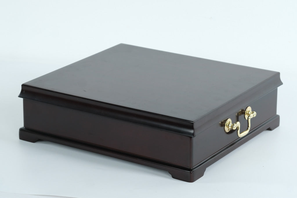 Deep mahogany finish with elegant traditional styling