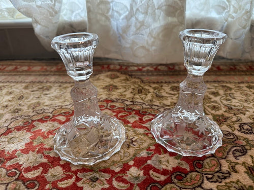 Wara Lead Crystal Candlestick Holders β Pair of 5" Hand-Cut Etched Star Candle Holders, Made in Germany