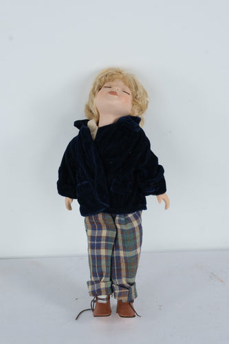Vintage Porcelain Sleeping Boy Doll β Blonde Hair, Velvet Jacket & Plaid Pants