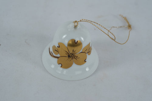 Vintage Porcelain Bell Ornament – Gold Floral Design, “Auld Lang Syne” Inscription