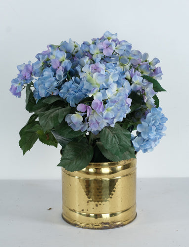 Artificial Blue & Lavender Hydrangea Arrangement in Brass Planter β 18β Tall Floral Display (9β x 9β)