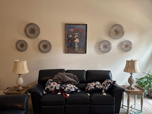 Set of 6 Decorative Metal Wall Art Wheels – Rustic Farmhouse Hanging Decor (Assorted Sizes)