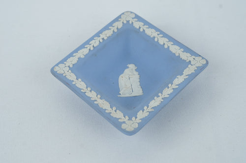 Vintage Wedgwood Blue Jasperware Square Dish – Classical Relief, 4.5" x 6"