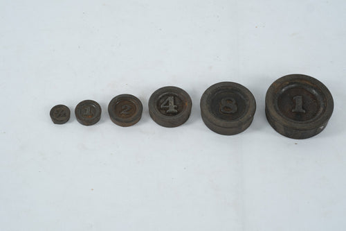 Antique Cast Iron Scale Weights Set β Β½ oz to 1 lb, Trade & Apothecary Weights with Calibration Marks