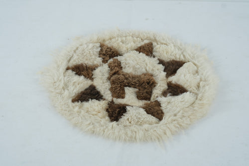 Vintage Alpaca Fur Patchwork Round Rug β Llama Motif Handmade Peruvian Mat