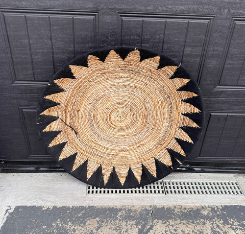 Large Handwoven Wall Hanging β Natural Seagrass & Black Sunburst Round Wall Decor