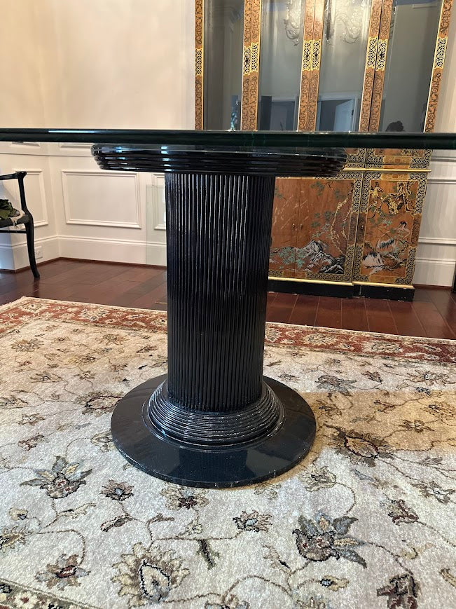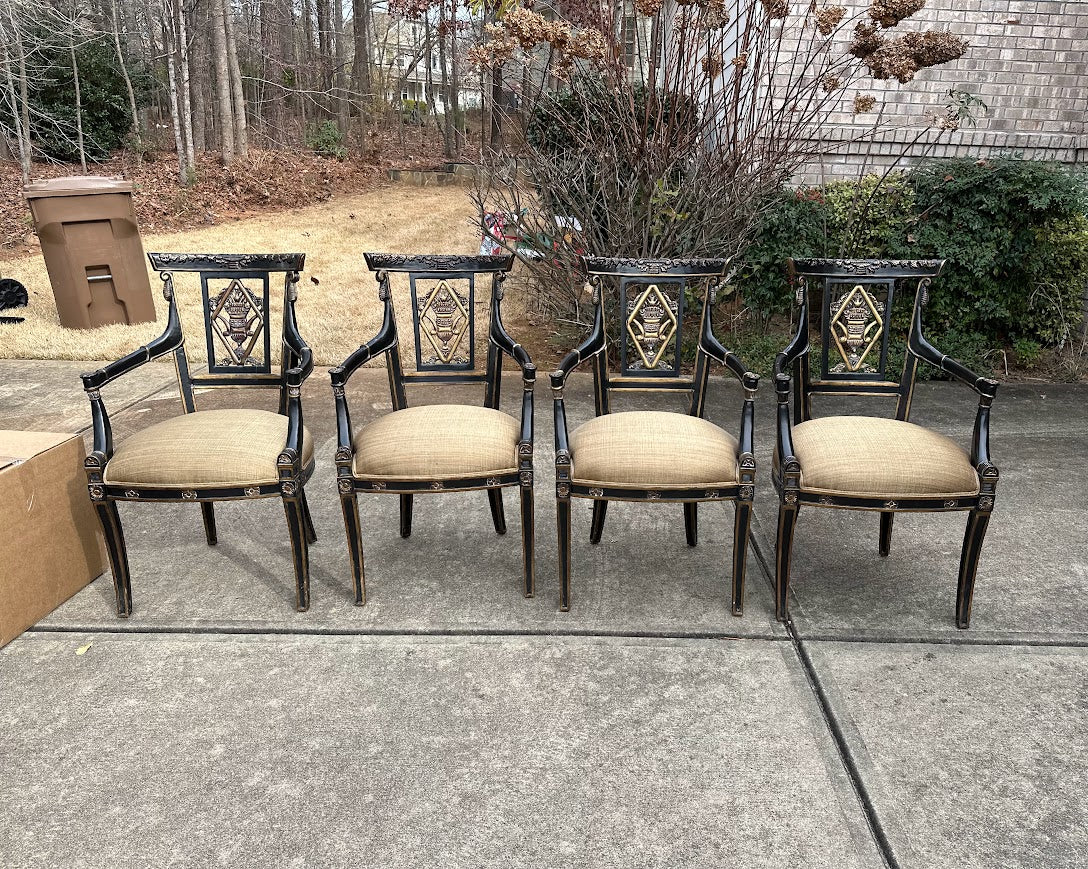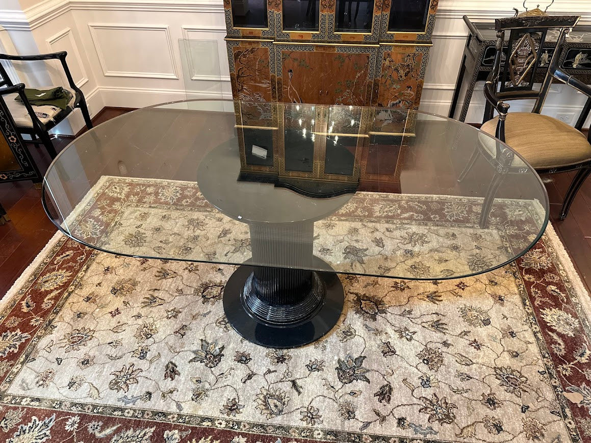 Regency Style Oval Glass Top Dining Table with Four Ebonized Chairs