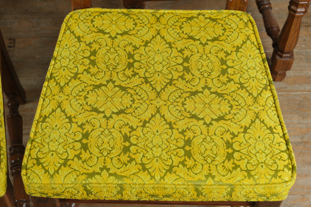 Gold seat bottoms have some stains; green seat bottoms are in excellent condition.