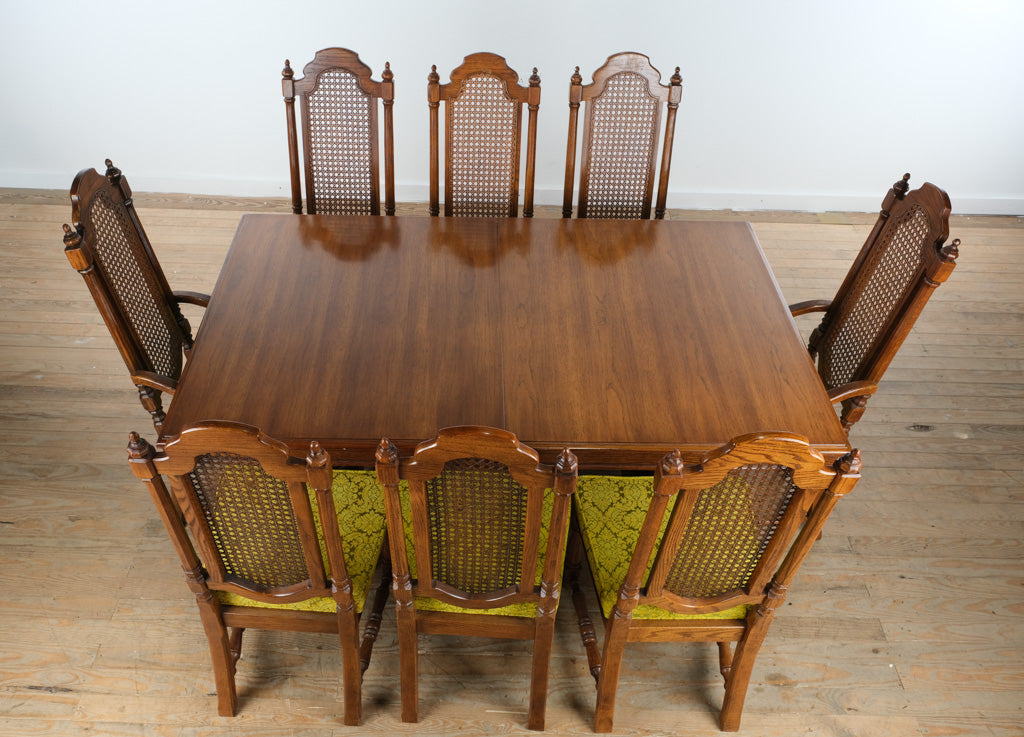 This is a substantial, high-quality vintage dining set perfect for someone who loves Old World, Mediterranean, or Spanish-inspired décor.