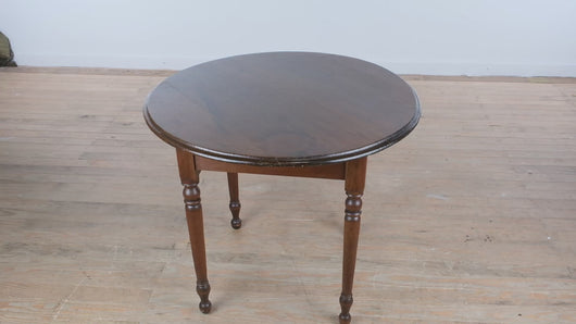A charming antique round table with timeless appeal, this piece showcases the simple elegance of traditional craftsmanship. Constructed from solid wood with beautifully turned legs and a warm aged finish, it brings both function and character to any space. The compact size makes it exceptionally versatile—perfect as a small dining table, reading nook companion, or entryway display table.