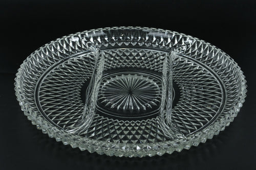 Clear Pressed Glass Divided Relish Tray – 12" Round Serving Dish
