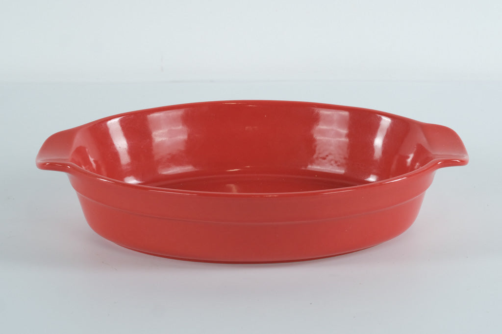Add a bold pop of color to your kitchen with this beautifully crafted red stoneware baking dish made in Portugal. With its smooth glossy finish, sturdy weight, and classic oval shape, it’s perfect for baked pastas, roasted vegetables, casseroles, and everyday oven-to-table serving. Integrated side handles make it easy to carry, and the vibrant red glaze offers a warm, timeless look that suits both modern and rustic kitchens alike.