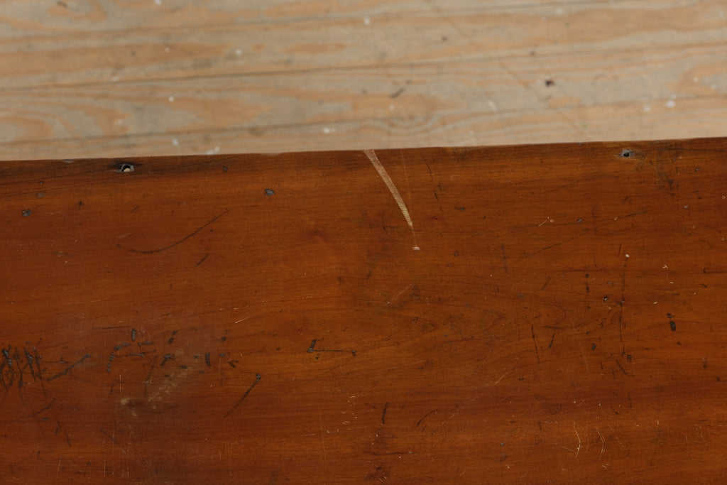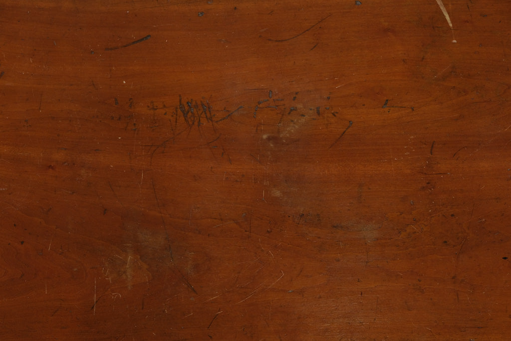 Drawer fronts display natural grain variation and some historical wear, including marks and small losses.